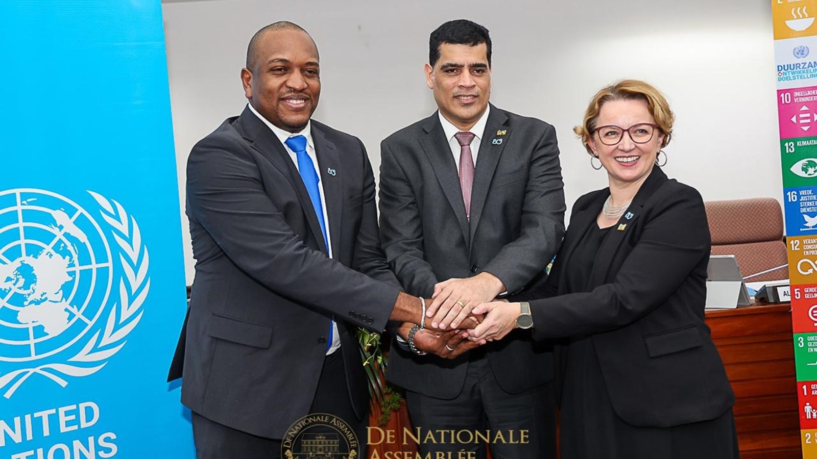 “Tachtig jaar geleden, op 24 oktober 1945, trad het handvest van de Verenigde Naties (VN) in werking. Landen besloten de wapens te verruilen voor dialoog en samenwerking. Door de verwoesting van de Tweede Wereldoorlog werd een organisatie geboren die hoop gaf aan generaties: de Verenigde Naties.” Woorden uit de toespraak van de voorzitter van De Nationale Assemblée (DNA), dr. ir. Michael A. Adhin. Hij stond stil tijdens de openbare vergadering ter gelegenheid van het tachtigjarig bestaan van de VN en vijftig jaar VN-lidmaatschap van Suriname. De plechtigheid markeerde twee historische mijlpalen en stond in het teken van internationale samenwerking, vrede, rechtvaardigheid en duurzame ontwikkeling. De vergadering vond plaats op 23 oktober 2025.
