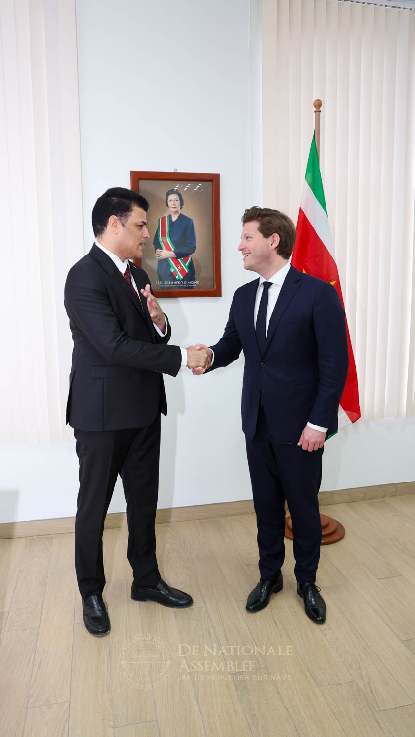 Een delegatie van de Tweede Kamer der Staten-Generaal, onder leiding van Thom van Campen, heeft een bezoek gebracht aan De Nationale Assemblée. De delegatie werd op maandag 27 april 2026 ontvangen door parlementsvoorzitter dr. h.c. ir. Michael Ashwin Adhin en heeft vervolgens overleg gevoerd met de fractieleiders.