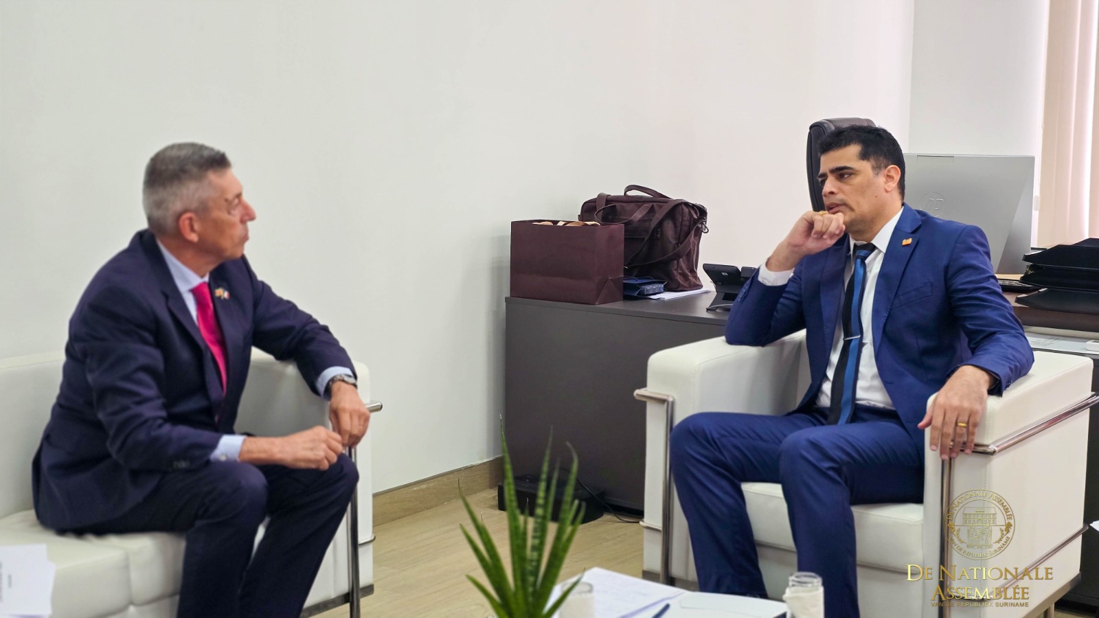 De ambassadeur van het Koninkrijk der Nederlanden, Walter Oostelbos, heeft op donderdag 30 oktober 2025 een kennismakingsbezoek gebracht aan de voorzitter van De Nationale Assemblée, dr. ir. Michael A. Adhin. Tijdens het onderhoud werd van gedachten gewisseld over de Trias Politica, een principe dat zowel Suriname als het Koninkrijk hoog in het vaandel dragen.