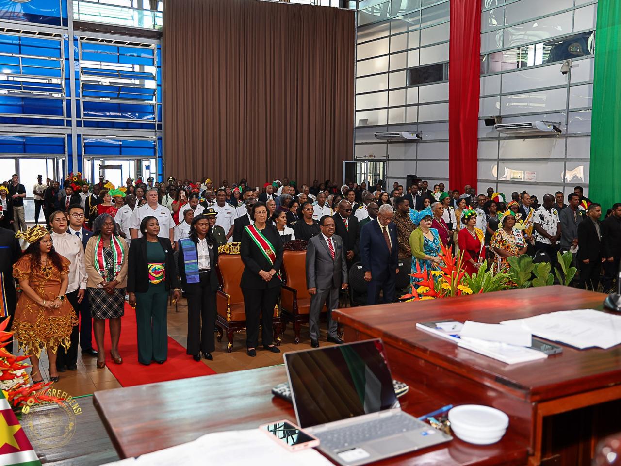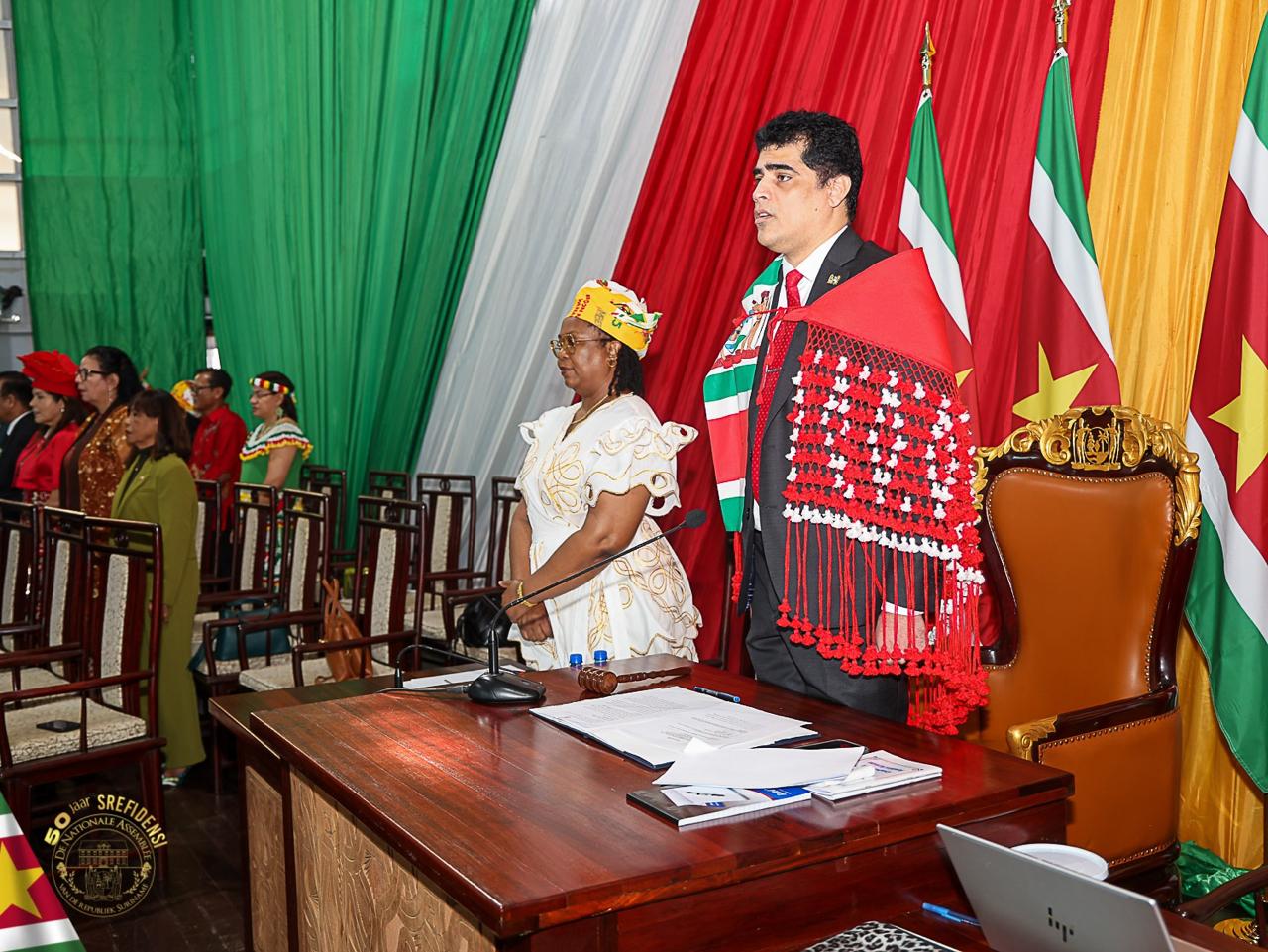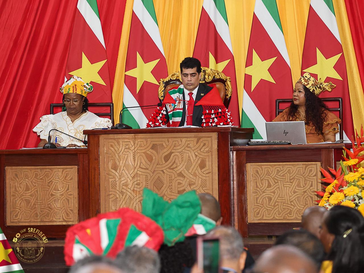 Drs. Rabindre Parmessar, voorzitter van de NDP-fractie, zegt dat Suriname ondanks moeilijke momenten – waaronder een opgelegde broederstrijd – zijn eenheid, saamhorigheid en wederzijds respect heeft weten te behouden. “Dat is misschien onze grootste prestatie als natie.” Volgens Parmessar moeten de toekomstige kansen, zoals het olie- en gaspotentieel, met wijsheid en verantwoordelijkheid worden benut, en moeten de natuurlijke rijkdommen van het land beschermd worden voor komende generaties. “Echter, mag onze ontwikkeling nooit ten koste gaan van wat ons uniek maakt. Wij zijn het enige land ter wereld met meer dan 90 procent bosbedekking en een carbon-negatieve status. Dat is een zegen maar ook een verantwoordelijkheid.”