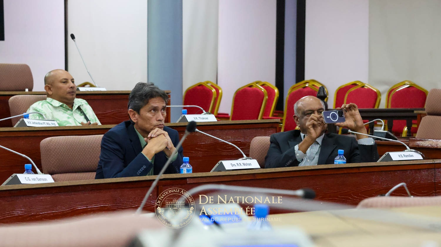 De leden die de vergadering hebben bijgewoond zijn: drs. Rabindre Parmessar, dr. Steven Reyme, mr. Stanley Betterson, mr. Ebu Jones LLB en drs. Dew Sharman.