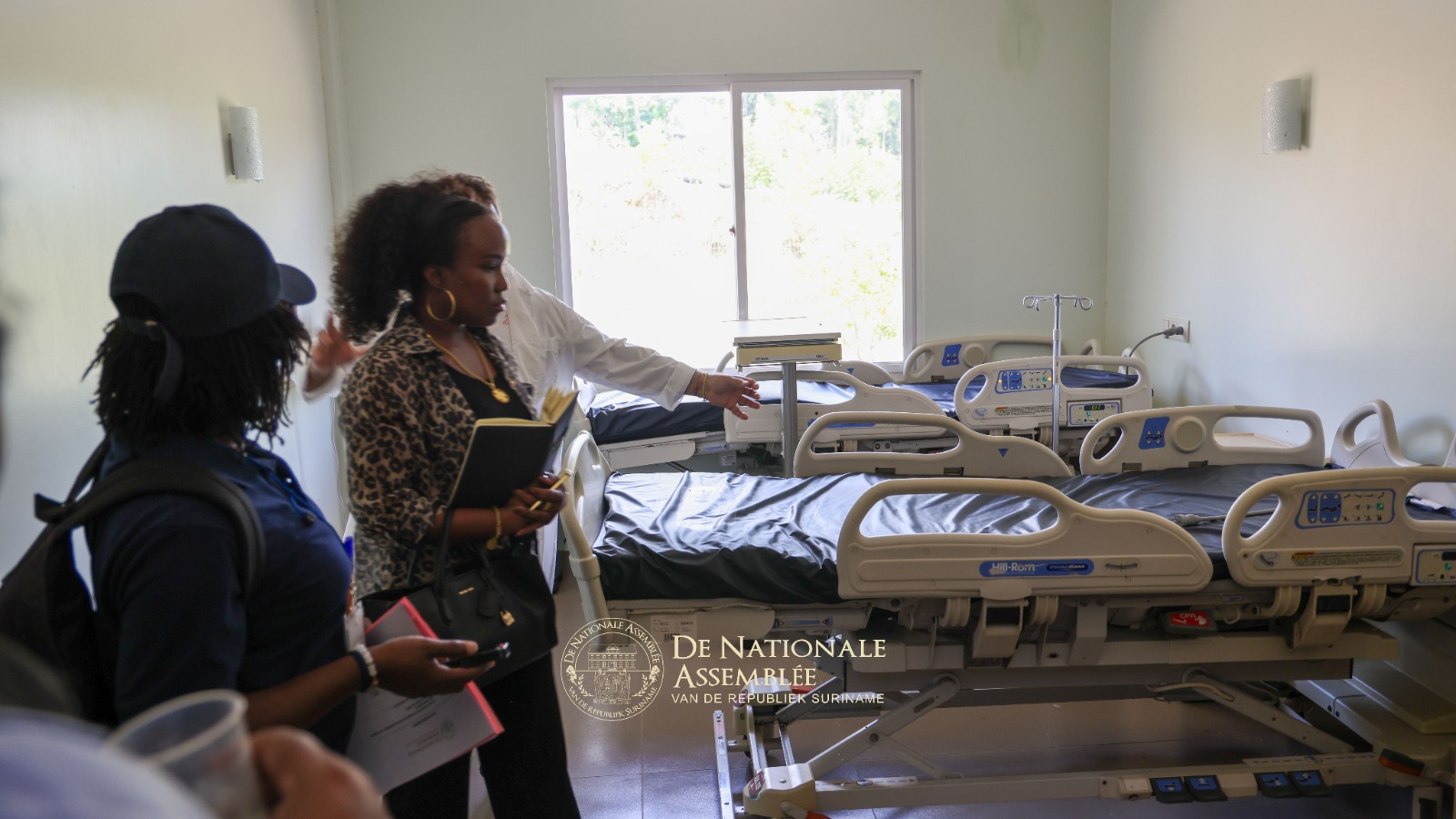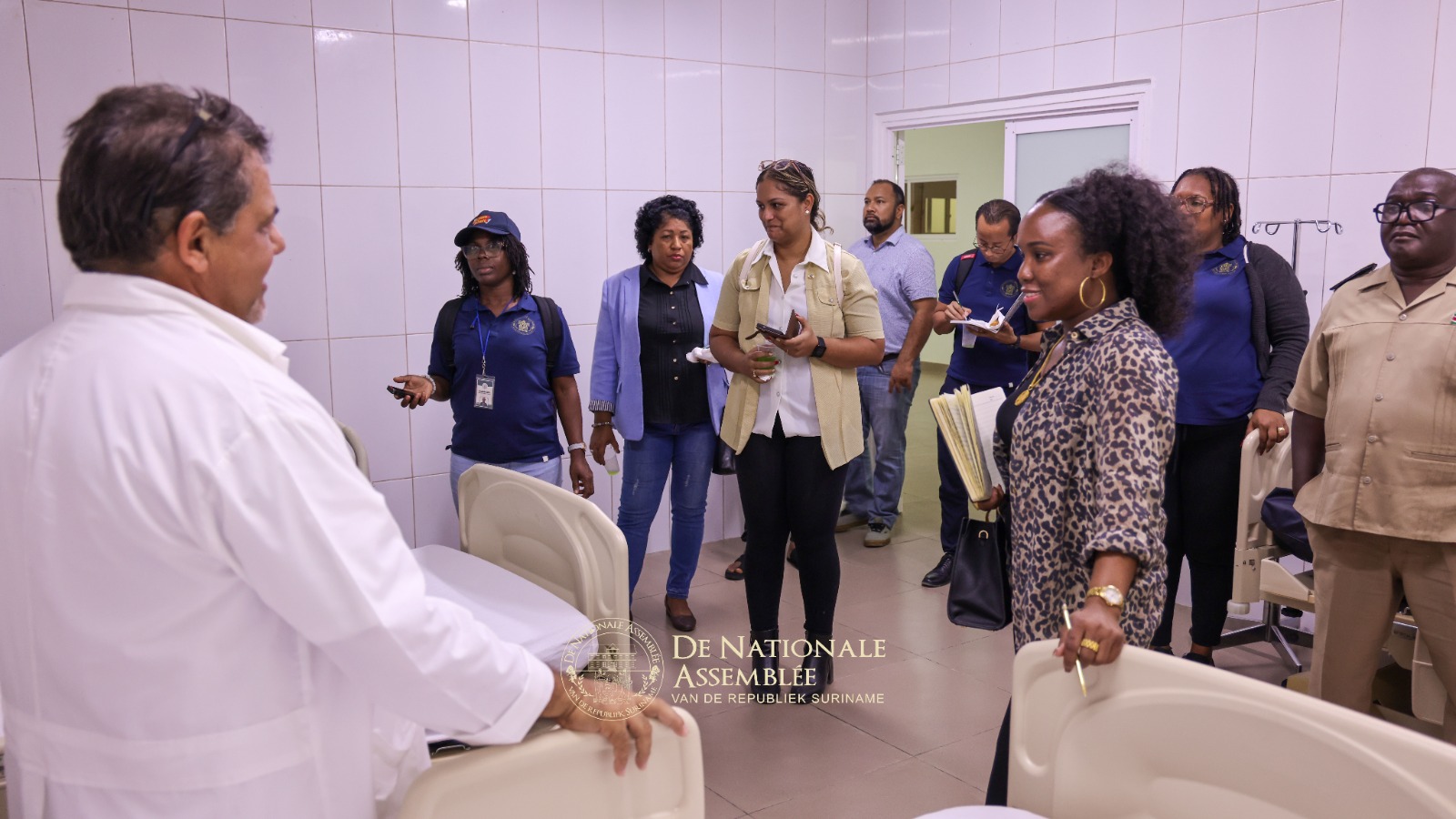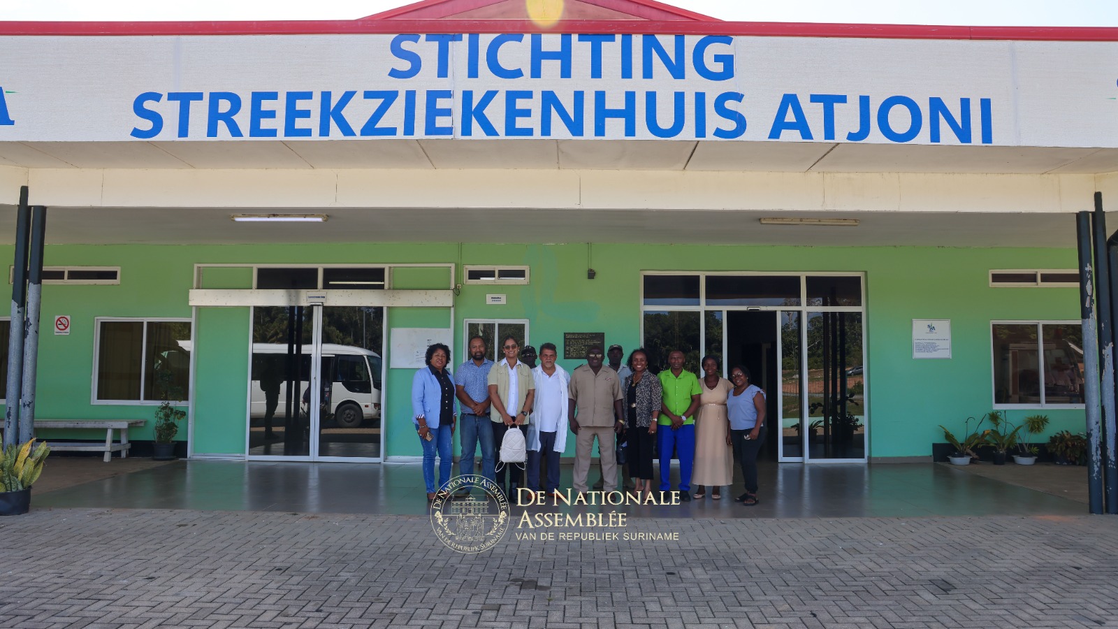 De delegatie bracht tevens een bezoek aan het Streekziekenhuis Atjoni, waar zij werd ontvangen door districtscommissaris Humphry Jeroe van het bestuursressort Boven-Suriname (Sipaliwini) en het managementteam van het ziekenhuis. Tijdens de rondleiding werd toegelicht dat het ziekenhuis weliswaar is opgeleverd en beschikt over diverse medische apparatuur, maar nog niet volledig operationeel is. “Het ziekenhuis is goed uitgerust en kan verschillende onderzoeken uitvoeren,” onderstreepte Mario Gonzalez, medisch coördinator. Het ziekenhuis beschikt onder andere over een laboratorium en een apotheek.