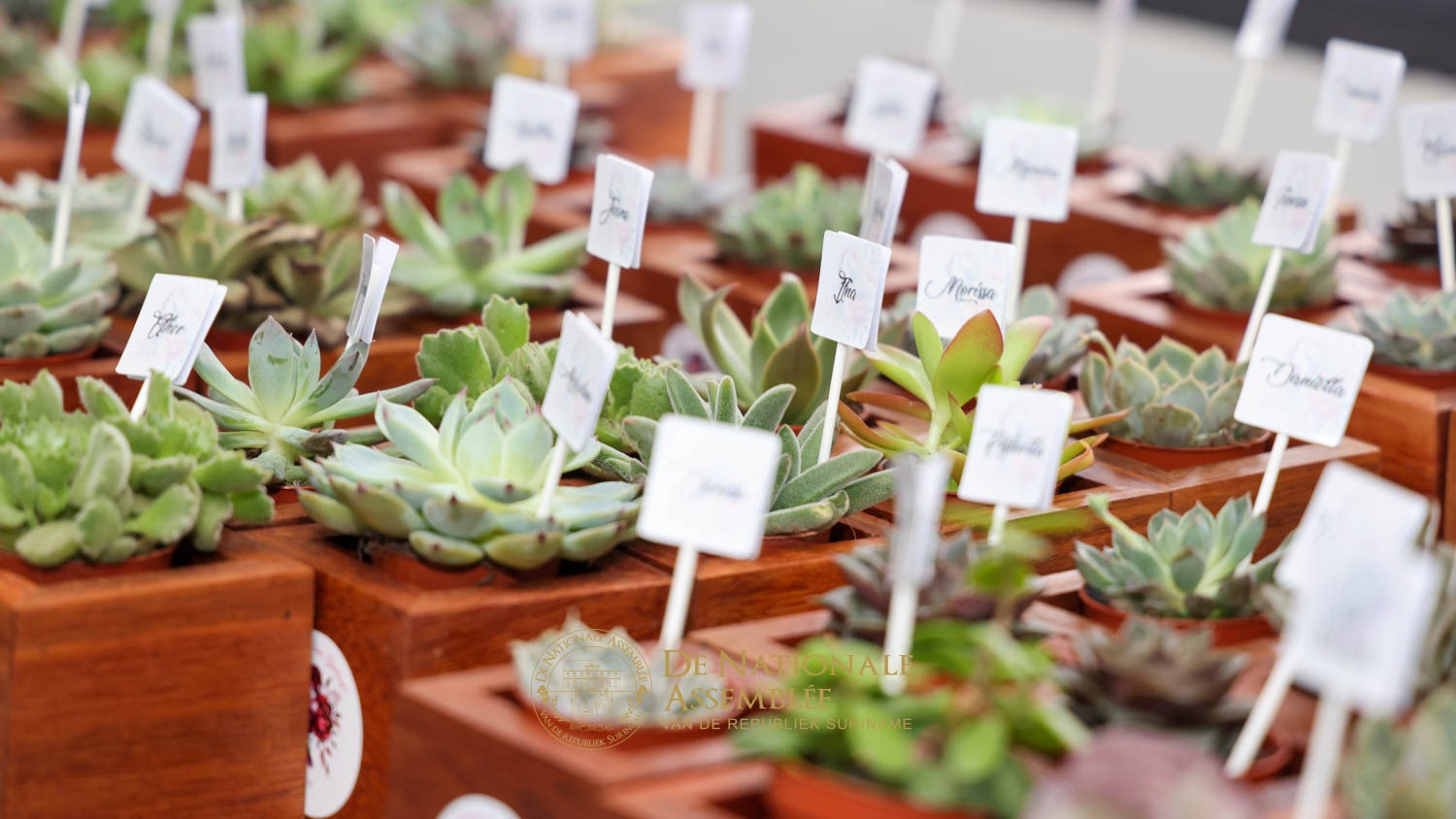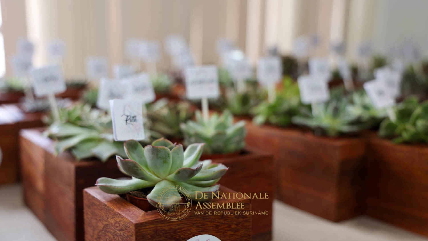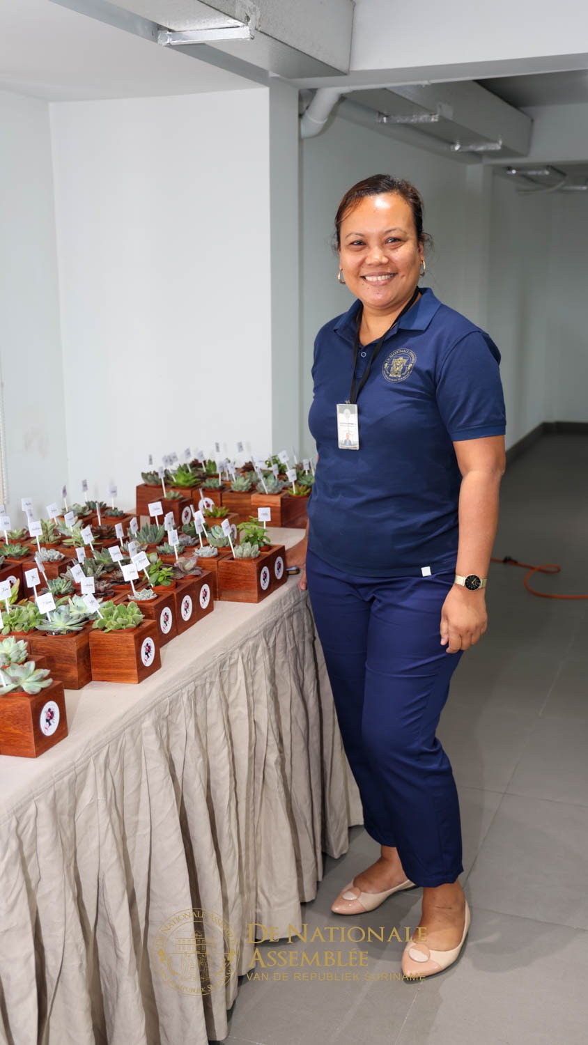 Als blijk van dank en respect overhandigde de voorzitter hen een geschenk, waarmee hun inzet, betrokkenheid en waardevolle bijdrage aan de democratische ontwikkeling van Suriname werd onderstreept. Het geschenk bestond uit een plant, voorzien van de naam van de betreffende vrouw en een bemoedigende boodschap (affirmatie) en natuurlijk snacks.