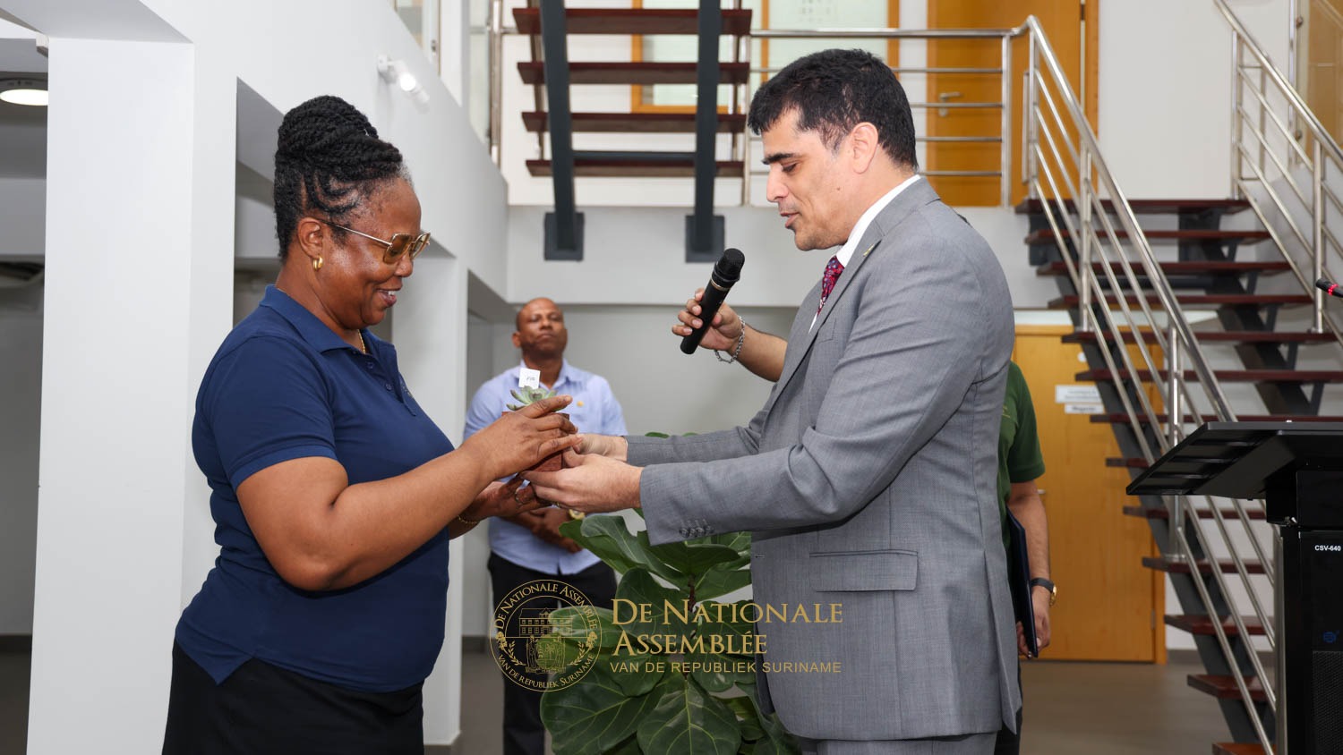 Met het symbolische gebaar van het overhandigen van een geschenk wilde de voorzitter niet alleen erkenning geven aan de vrouwelijke parlementariërs en medewerkers, maar ook de bredere betekenis van vrouwen in de samenleving onderstrepen. Hij sprak daarbij zijn waardering uit voor alle vrouwen die zich, vaak met grote toewijding en soms in stilte, inzetten voor hun gezin, hun gemeenschap en voor Suriname.