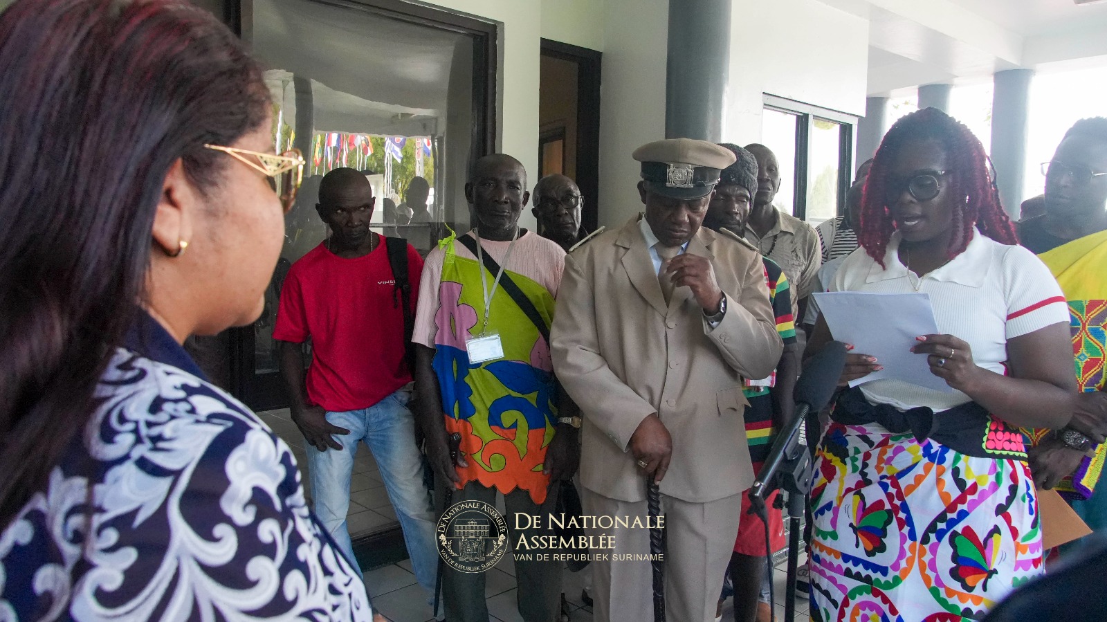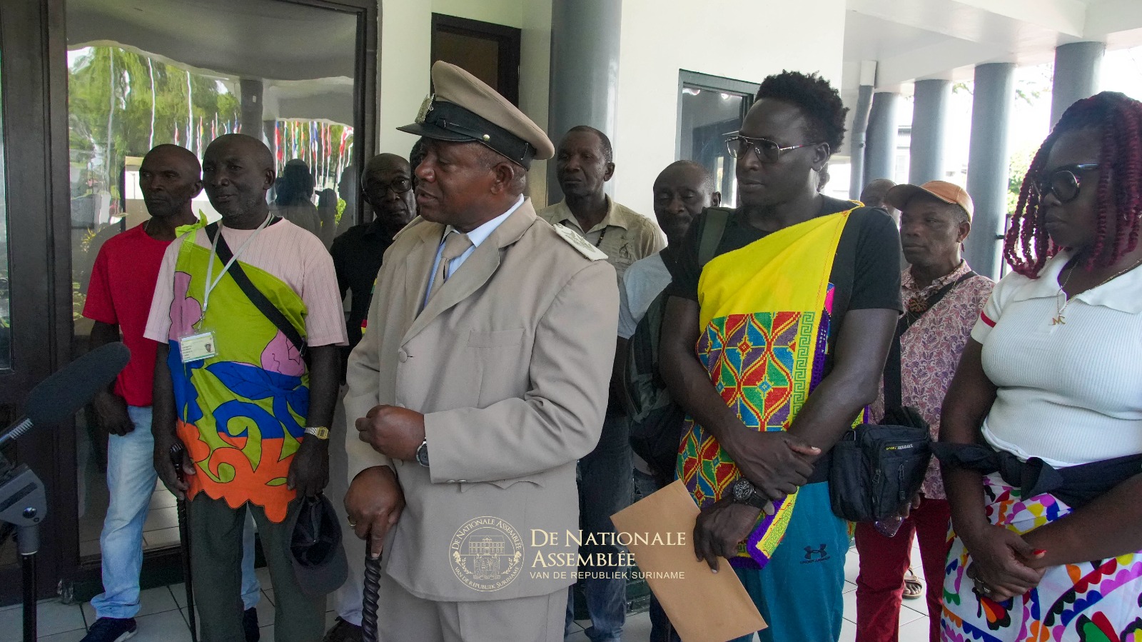 De petitie vloeit voort uit een resolutie die werd aangenomen tijdens een spoedvergadering van de Saamaka-gemeenschappen te Goejaba. Kapitein Stephanus Poeketi van Dawme gaf een toelichting op de ingediende petitie, waarna deze werd voorgelezen door Merougia Jabini. De petitie werd op woensdag 24 december 2025 officieel ingediend en in ontvangst genomen door waarnemend griffier Agatha Ramdas, in aanwezigheid van DNA-lid mr. Ebu Jones.