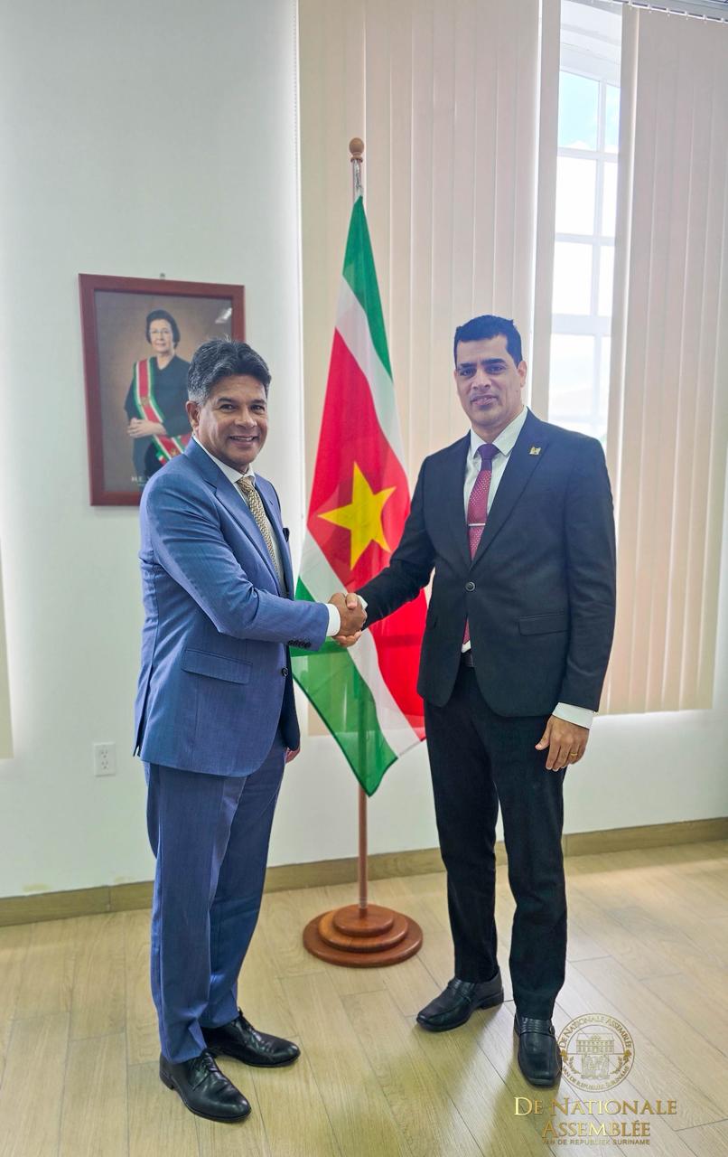 De voorzitter van De Nationale Assemblée, Dr. Ir. Michael Ashwin Adhin, ontving op donderdag 16 oktober 2026 de niet-residerende ambassadeur van de Republiek Panama Diomedes Heraclio Carles Cleghorn in Suriname voor een formele ontmoeting. Tijdens het gesprek werd stilgestaan bij de rol van parlementen in het versterken van democratische vertegenwoordiging en samenwerking. Ook kwam de komende ParlLatino-bijeenkomst in januari 2026 in Panama aan bod, waarvoor het Surinaamse parlement officieel zal worden uitgenodigd.
