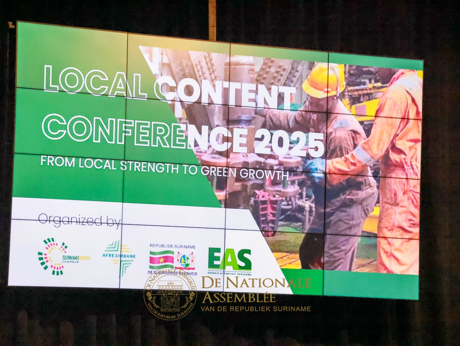 Suriname streeft naar een nieuw ontwikkelingsmodel waarin economische diversificatie, lokale participatie en duurzame groei centraal staan. Dat zei dr. ir. Michael A. Adhin, voorzitter van De Nationale Assemblée (DNA), tijdens zijn openingsspeech op de Local Content Conference 2025. De conferentie vond woensdag 22 oktober 2025 plaats onder het thema “Financing the Future: Local Content, Green Growth & Partnerships” en bracht zowel nationale als internationale stakeholders samen, waaronder vertegenwoordigers van de Suriname Energy Chamber (SEC), Afreximbank en de Surinaamse regering.