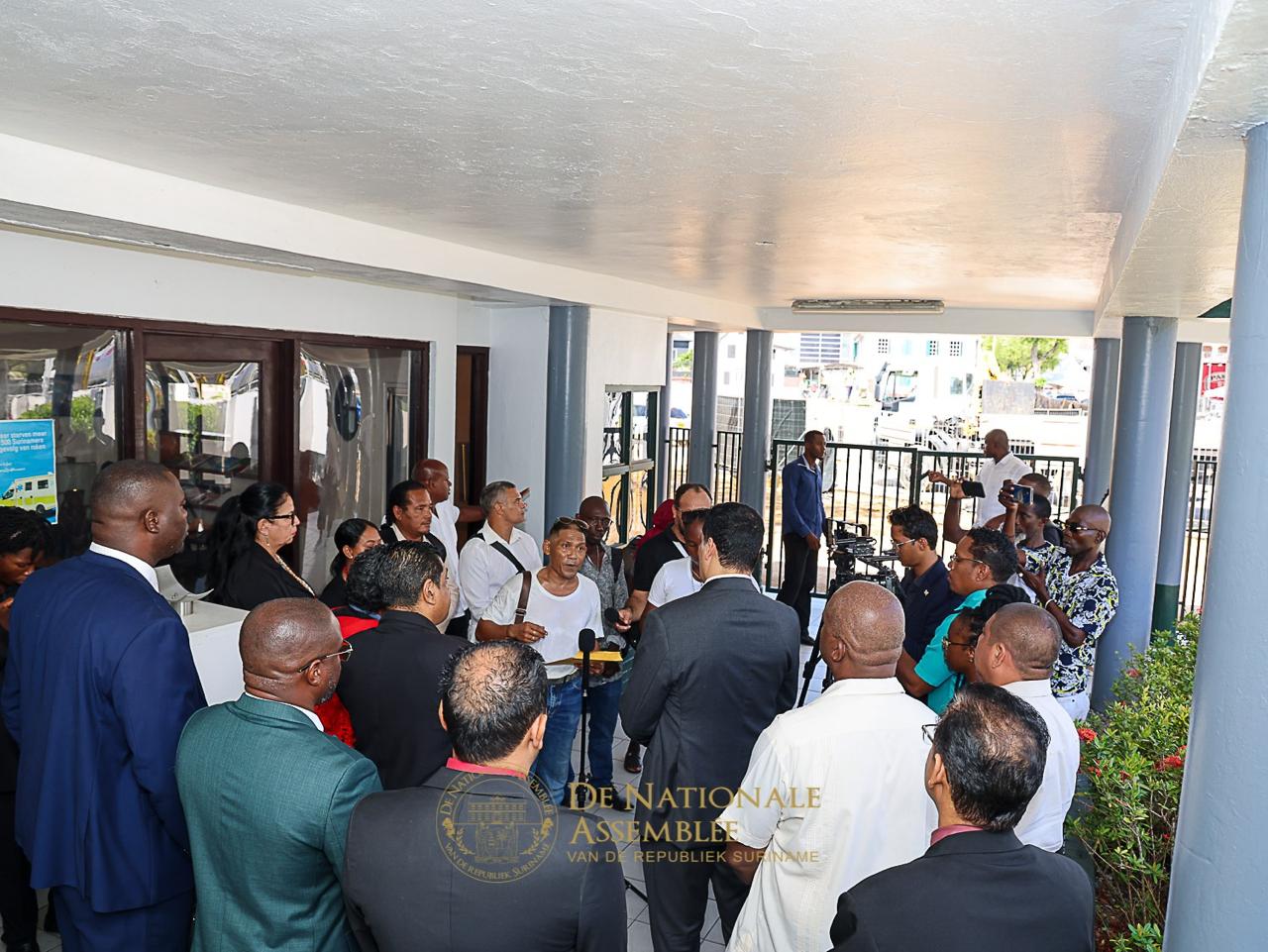 Adhin heeft de petities in ontvangst genomen en aangegeven dat het parlement op de hoogte is van de situatie. “U mag erop rekenen dat het vertrouwen in het huis van het volk de stem van het volk altijd gehoord mag blijven.” “We willen graag dat de juridische waarheidsvinding ook wetenschappelijke waarheidsvinding mag zijn. Wij zullen zeker uw advies opvolgen om een zitting te houden, waarin wordt besproken wat los van de rechtszaak speelt en wat de feiten en omstandigheden zijn. U zult zeker een reactie van mij ontvangen,” aldus de voorzitter.