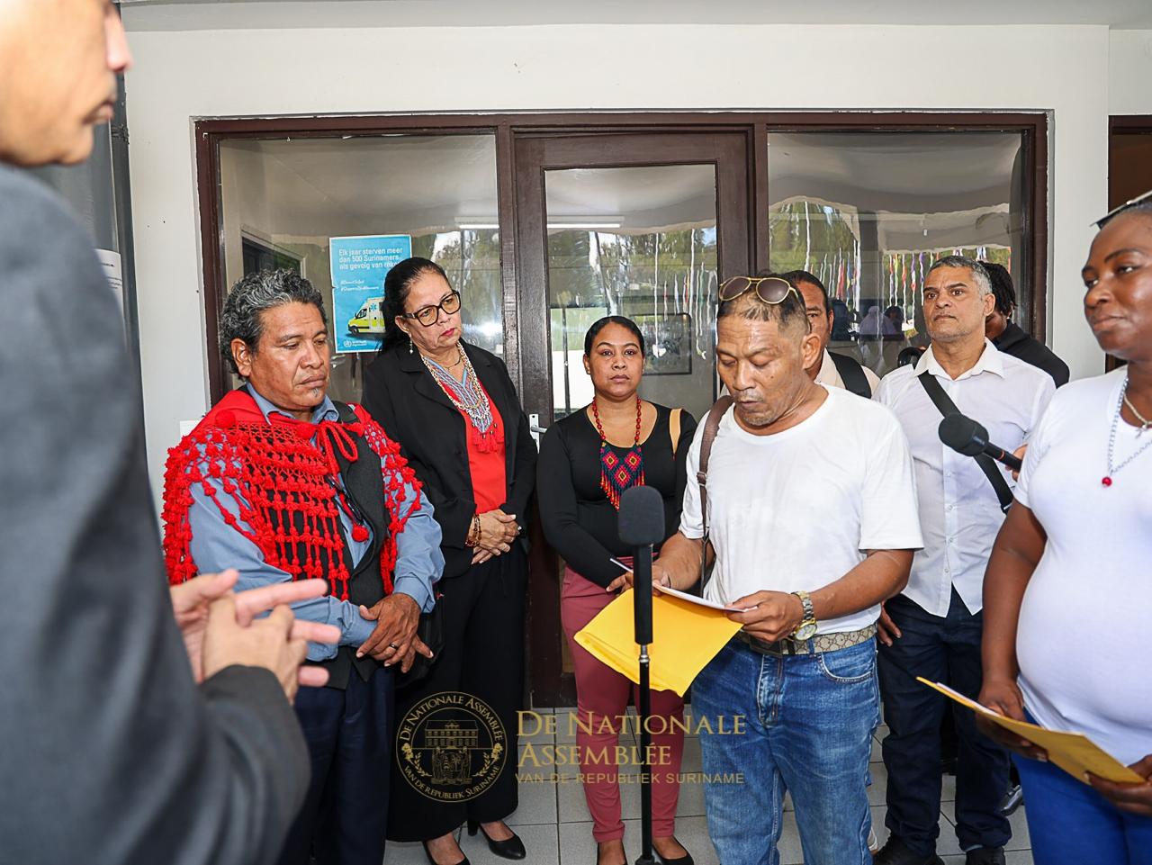 Op donderdag 23 september 2025 hebben zij namens de getroffen gemeenschap hun petitie ingediend bij dr. Ir. Michael A. Adhin, voorzitter van De Nationale Assemblee (DNA). Met deze petitie maken de bewoners van Pikin Saron hun zorgen en eisen officieel kenbaar.